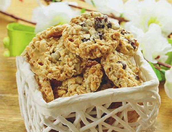 ОВСЯНОЕ ПЕЧЕНЬЕ Ингредиенты: яйцо — 1 шт 0,5 стакана овсяных хлопьев 0,5 стакана овсяной муки (можно перемолоть овсянку в кофемолке) 0,5 ч. л соды 1 ч. л. сахара изюм по вкусу Приготовление: Для начала взбейте с сахаром яйца до однородной консистенции, без крупинок. Добавьте в массу хлопья, перемешайте и оставьте на 10 минут, чтобы они впитали в себя влагу. Добавьте в смесь овсяную муку, гашенную лимонным соком соду и изюм. Дайте тесту настояться и загустеть в течение 15 минут. Застелите противень пергаментом, выкладывайте ложкой тесто горками, формируя печенье и выпекайте при температуре 180 °C около 20 минут.